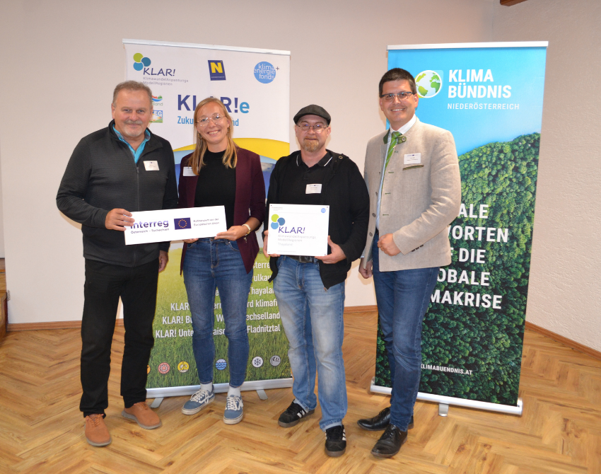 Eduard Köck (Bgm Thaya), Christina Mayrhofer (Klimabündnis NÖ), Martin Schrammel (KLAR! Thayaland) und Lorenz Mayr (LK NÖ)